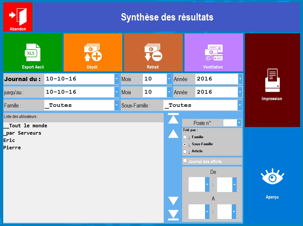 • Impression des ventes par familles, sous-familles ou articles