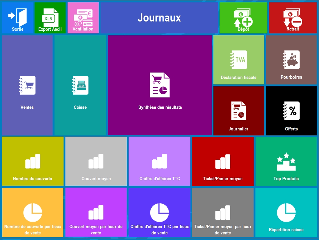- Statistiques graphiques sur les couverts, le couvert moyen par lieux de vente.